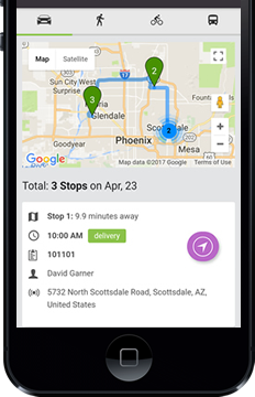 Drivers can sort their delivery destinations by time of delivery or by the most efficient route.