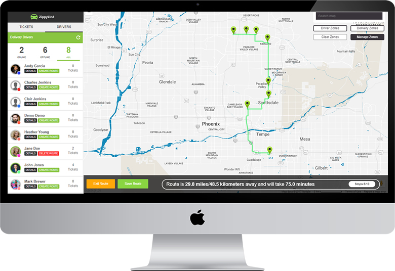 Drivers can use our route optimization tool inside the drivers app or you can create custom routes within the dispatch operator software.- Driver will be sent the new route within seconds of the route being created.