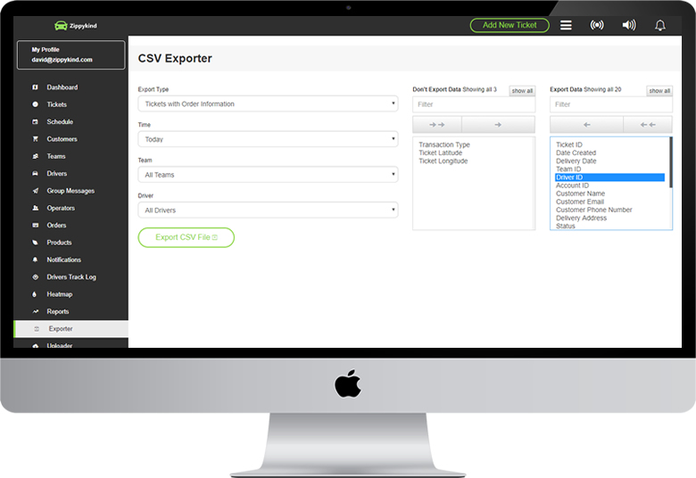 Export your delivery data in a CSV file using our highly customizable CSV exporter.- Export customer accounts.