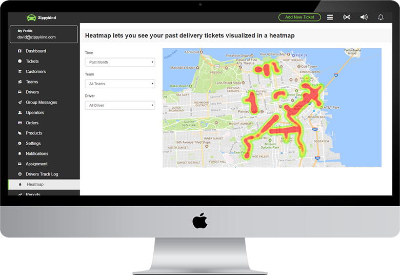 Using our delivery ticket heatmap, you can get a better understanding of your company's busier delivery areas in town. Review your past deliveries in the form of a heatmap, line chart or column chart. Filter results by team, delivery driver or date range.Easily Send Delivery Tickets To Your Drivers