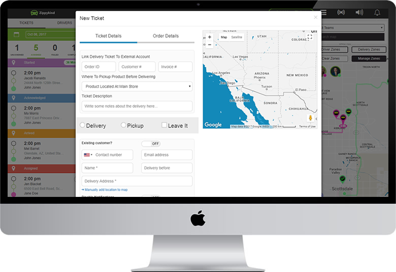 When you create a new delivery ticket, we use the customers email address to find their picture online, we then display the picture with the delivery ticket for dispatch and your drivers to see. Letting your drivers see a picture of who they are delivering to can be an important safety precaution.You can also easily edit delivery tickets, change the status of the ticket and re-assign the driver. We will also set you up with a dedicated virtual number that we will route all calls and texts between your customers and drivers so that you drivers' phone numbers remain private.