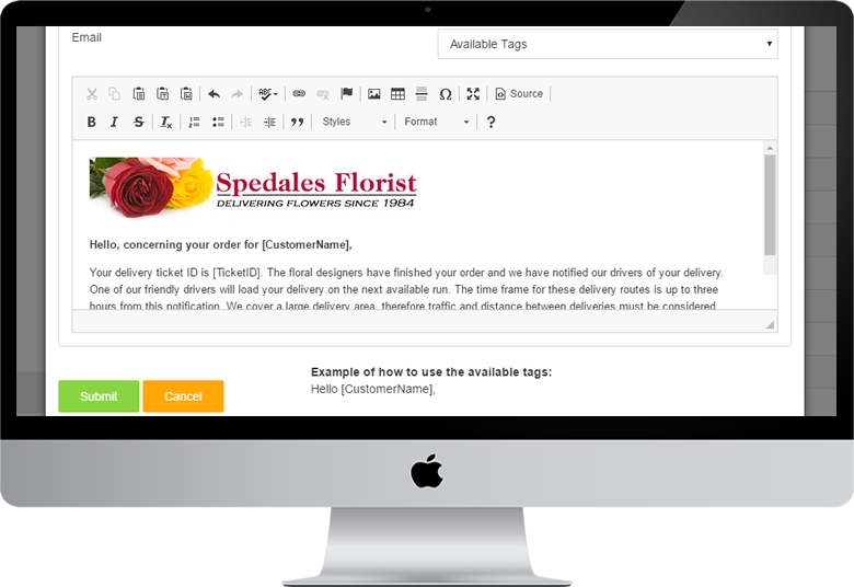 Lets say your company delivers flowers, and the sender wants to see photos of the recipient receiving the flowers or perhaps just a picture of the flowers being sent; using our app, your driver can take photos and attach them to the delivery tickets and send them to your customer accompanied by a custom message from your company.