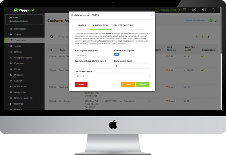 Create recurring subscriptions for your customers who need deliveries on a regular basis.- Our system will automatically create delivery tickets 4 weeks in advance making it really easy for your drivers and dispatch operators to see upcoming deliveries.